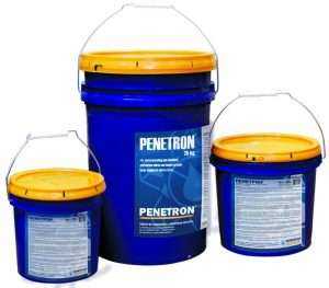 Одной из популярных проникающих гидроизоляций является сухая смесь Пенетрон. В качестве основы для этой смеси используется цемент, состав разводят водой непосредственно перед употреблением. Скорость застывания — 30 минут, поэтому рекомендуется готовить раствор в таком объеме, чтобы его можно было нанести за 1 раз.