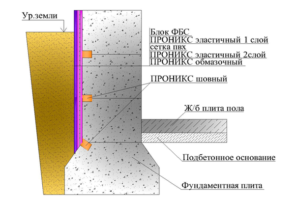 Схема вертикальной гидроизоляции фундамента из блоков