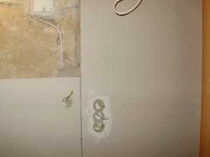 Из этого следует, что с такой стеной легко и просто работать. Одно условие – электропроводку в слое клея не спрячешь, поэтому для нее нужно проштробить каналы, а также просверлить отверстия под выключатели и розетки. Провод нужно уложить в каналы и закрепить через каждые 50 сантиметров. В листах гипсокартона следует просверлить соответствующие отверстия.