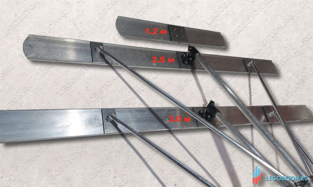 - Канальная – корректирует свежеуложенный бетон. Изготавливается из нержавеющей стали и алюминиевых сплавов. Представляет собой гладкую пластину с зеркальной поверхностью 1-3 метра шириной, длинной до 6 метров и ручку.