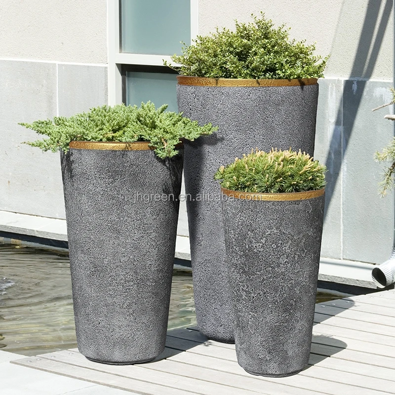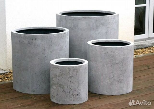 Поклонники бетонной тенденции могут выбирать между плантаторами из чистого бетона, из стекловолокна в бетонном стиле или из фиброцемента. Последний состоит из смеси цемента, стекловолокна и песка.
