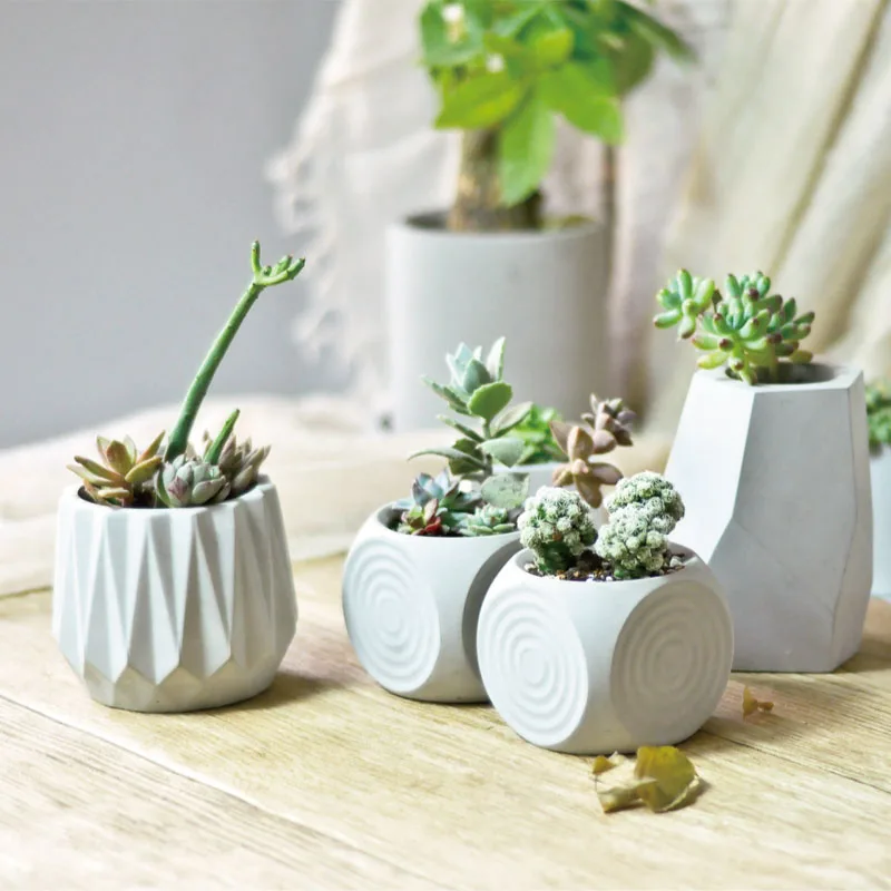 14. Милые горшки из бетона отлично подойдут для украшения интерьера.