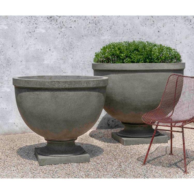 Выглядящие из цемента сажалки, тем не менее, морозоустойчивы и могут использоваться на открытом воздухе круглый год. Они по-прежнему имеют достаточно большой собственный вес и не опрокидываются легко даже при сильном ветре. Если цветочный горшок большой, это еще больше увеличивает устойчивость за счет большего веса.