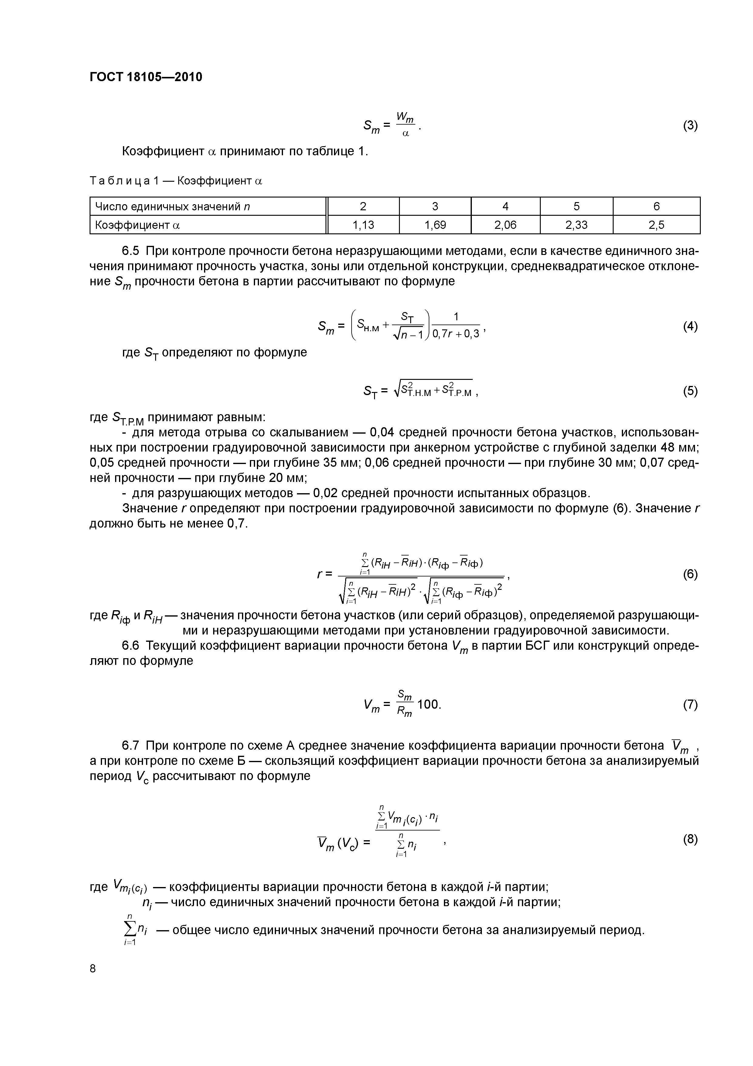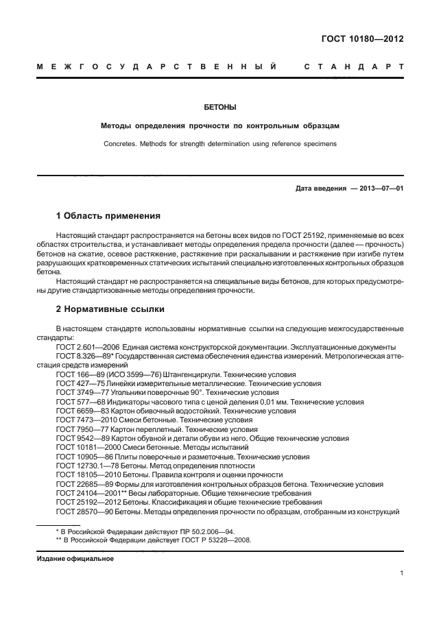 Стандарт распространяется на все виды бетонов, для которых нормируется прочность, и устанавливает правила контроля и оценки прочности готовой к применению бетонной смеси, бетона монолитных, сборно-монолитных и сборных бетонных и железобетонных конструкций. Выполнение требований стандарта гарантирует обеспечение принятых при проектировании расчетных и нормативных сопротивлений бетоноконструкций.