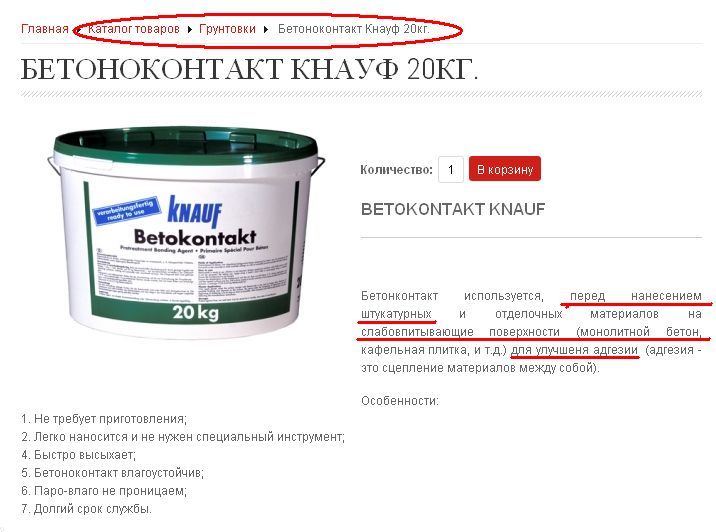 Надежное соединение с последующими слоями обеспечивается засчет мелкофракционного щелочестойкого песка в ее составе, придающего основанию необходимую шероховатость. После обработки стен бетоноконтактом Кнауф на цемент можно наносить слой известковой или гипсовой штукатурки, не опасаясь, что разнородные материалы вступят в химическую реакцию.
