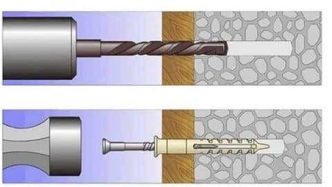Получив отверстие нужного диаметра, следует аккуратно вбивать дюбель в стену заподлицо с поверхностью, потом вкрутить саморез, оставив нужную длину для того, чтобы можно было использовать крепеж.