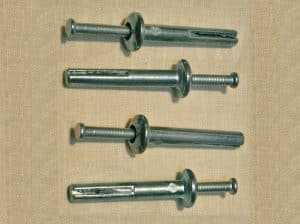 - Бабочка – на конце расширяющейся части имеет резьбу: гвоздь проходит через нее и заставляет раскрываться всю конструкцию, словно зонтик. Крылья бабочки раскладываются на обратной стороне материала, создавая надежное крепление. Чаще всего используются для гипсокартона.