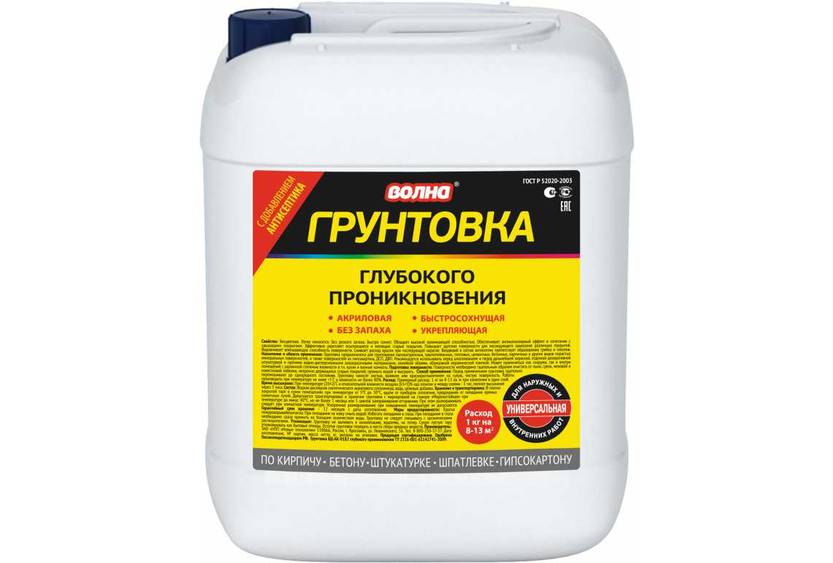 Для усиления внутренних и внешних хрупких, пористых, сильно впитывающих оснований, первичной обработки бетона, штукатурки, кирпичной кладки и других минеральных поверхностей перед окраской, шпаклевкой, оклейкой обоев, нанесением декоративных штукатурок