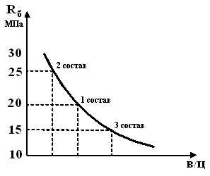 По результатам испытаний образцов трех составов бетона строят график Rб=f(В/Ц)
