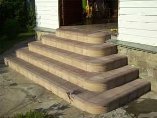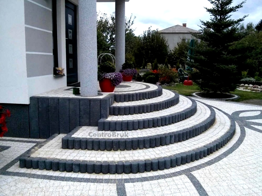 Красивая лестница или крыльцо, выложенные брусчаткой, в сочетании с мощеными тропинками, террасой или внутренним двориком придадут садовому участку законченный вид.