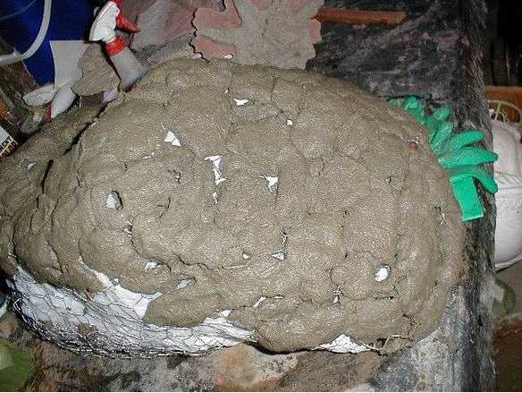 Π’Π΅ΠΏΠ΅ΡΡ Π½Π΅ΠΎΠ±Ρ ΠΎΠ΄ΠΈΠΌΠΎ ΠΏΡΠΈΠ³ΠΎΡΠΎΠ²ΠΈΡΡ ΡΠ°ΡΡΠ²ΠΎΡ. ΠΠ»Ρ ΡΡΠΎΠ³ΠΎ 1 ΡΠ°ΡΡΡ ΡΠ΅ΠΌΠ΅Π½ΡΠ° ΡΠΌΠ΅ΡΠΈΠ²Π°Π΅ΡΡΡ Ρ ΡΡΠ΅ΠΌΡ ΡΠ°ΡΡΡΠΌΠΈ ΠΏΠ΅ΡΠΊΠ°. ΠΠΎΠ΄Ρ Π΄ΠΎΠ±Π°Π²Π»ΡΠ΅ΡΡΡ ΡΡΠΎΠ»ΡΠΊΠΎ, ΡΡΠΎΠ±Ρ ΡΠ°ΡΡΠ²ΠΎΡ Π±ΡΠ» Π½Π΅ ΠΆΠΈΠ΄ΠΊΠΈΠΌ ΠΈ Π½Π΅ ΡΠΏΠΎΠ»Π·Π°Π» ΠΏΠΎ ΠΊΠ°ΡΠΊΠ°ΡΡ. ΠΡΡΡΠ΅ ΡΠ°ΡΡΠ²ΠΎΡ Π½Π°Π½ΠΎΡΠΈΡΡ Π½Π° ΠΊΠ°ΡΠΊΠ°Ρ Π½Π΅Π±ΠΎΠ»ΡΡΠΈΠΌΠΈ Β«Π»Π΅ΠΏΠ΅ΡΠΊΠ°ΠΌΠΈΒ». ΠΠΎΡΠ»Π΅ ΡΠΎΠ³ΠΎ, ΠΊΠ°ΠΊ Π½Π°Π½Π΅ΡΠ΅Π½ ΠΏΠ΅ΡΠ²ΡΠΉ ΡΠ»ΠΎΠΉ, Π΅ΠΌΡ Π½Π΅ΠΎΠ±Ρ ΠΎΠ΄ΠΈΠΌΠΎ Π½Π΅ΠΌΠ½ΠΎΠ³ΠΎ ΠΏΠΎΠ΄ΡΠΎΡ Π½ΡΡΡ. ΠΠ°Π»Π΅Π΅ Π½ΡΠΆΠ½ΠΎ ΠΏΡΠΈΠ³ΠΎΡΠΎΠ²ΠΈΡΡ Π±ΠΎΠ»Π΅Π΅ ΠΆΠΈΠ΄ΠΊΠΈΠΉ ΡΠ°ΡΡΠ²ΠΎΡ, ΠΊΠΎΡΠΎΡΡΠΌ Π½ΡΠΆΠ½ΠΎ ΠΎΠ±ΠΌΠ°Π·Π°ΡΡ Π±ΡΠ΄ΡΡΠΈΠΉ ΠΊΠ°ΠΌΠ΅Π½Ρ. ΠΠ΅Π»Π°ΡΡ ΡΡΠΎ ΠΌΠΎΠΆΠ½ΠΎ ΡΠΏΠ°ΡΠ΅Π»Π΅ΠΌ ΠΈΠ»ΠΈ ΡΡΠΊΠΎΠΉ, ΡΠΎΡΠΌΠΈΡΡΡ Π½Π°ΡΡΡΠ°Π»ΡΠ½ΡΠ΅ Π²ΠΏΠ°Π΄ΠΈΠ½Ρ ΠΈ Π²ΡΠΏΡΠΊΠ»ΠΎΡΡΠΈ. ΠΠ·Π΄Π΅Π»ΠΈΠ΅ Π½Π°ΠΊΡΡΠ²Π°Π΅ΡΡΡ ΠΏΠ»Π΅Π½ΠΊΠΎΠΉ Π΄Π»Ρ ΡΠ°ΡΡΠ²ΠΎΡΠ° ΠΈ ΠΎΡΡΠ°Π²Π»ΡΠ΅ΡΡΡ Π΄Π»Ρ Π·Π°ΡΡΡΠ²Π°Π½ΠΈΡ, ΠΏΠΎΡΠ»Π΅ ΡΠ΅Π³ΠΎ ΠΏΠ΅ΡΠ΅Π²ΠΎΡΠ°ΡΠΈΠ²Π°Π΅ΡΡΡ ΠΈ Π°Π½Π°Π»ΠΎΠ³ΠΈΡΠ½ΡΠΌ ΠΎΠ±ΡΠ°Π·ΠΎΠΌ ΡΠΎΡΠΌΠΈΡΡΠ΅ΡΡΡ Π΄Π½ΠΎ.