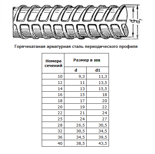 D — это и есть номинальный диаметр арматуры, т.е. номер профиля!