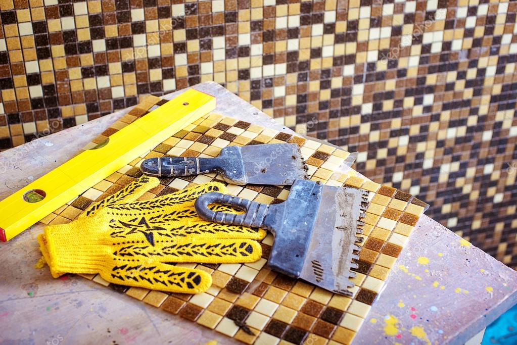 Сначала мастеру необходимо проверить поверхность на прочность, очистить от мусора и выровнять. Очень важно, что бы поверхность была ровной, поскольку лист мозаичного фрагмента очень гибкий и может повторить все неровности основания, что впоследствии будет иметь кривой и некрасивый вид.