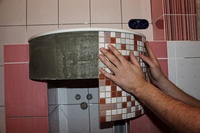 Следует отметить, что расходных материалов, таких как клей и затирка, потребуется гораздо больше, чем при укладке обычной крупноформатной керамической плитки. Отделка также предполагает наличие большого количества швов, поэтому для того, чтобы обезопасить поверхность от негативного воздействия влаги, необходимо использовать исключительно эпоксидную затирку. А такой материал – дорогое удовольствие. Поэтому перед тем как клеить плитку-мозаику, следует взвесить свои финансовые возможности.