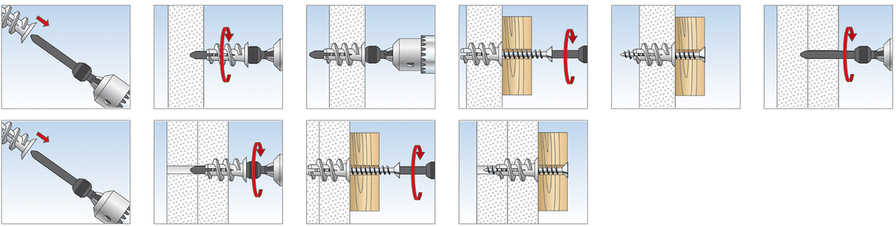 При вкручивании в него шурупа крылья дюбеля раскрываются и упираются в поверхность гипсокартона с обратной стороны. Для предотвращения прокручивания элемента предусмотрены специальные манжеты.