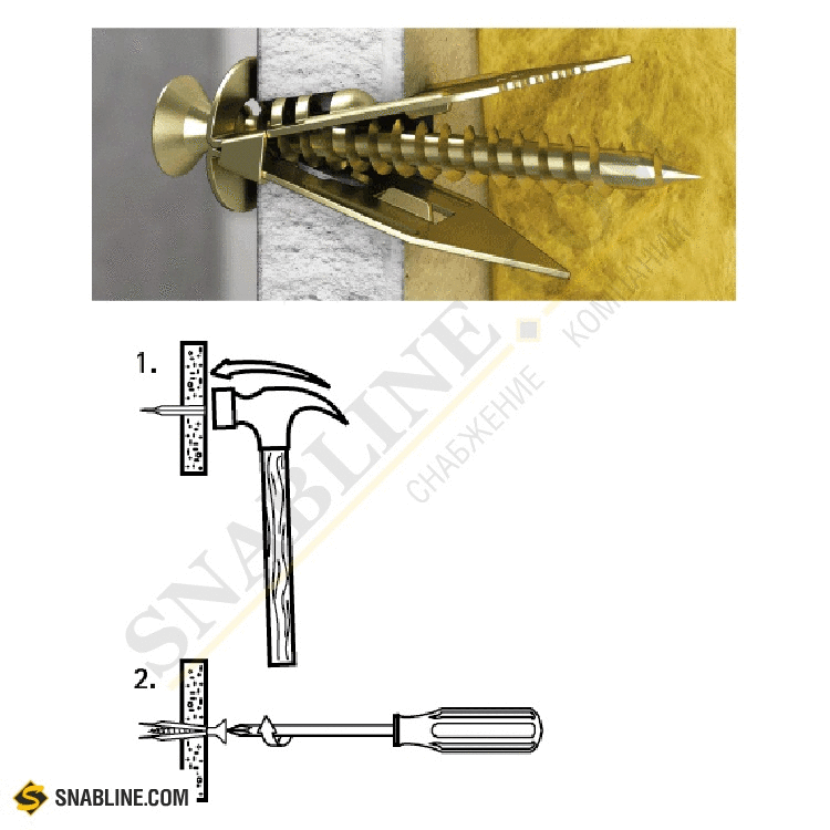 Инструкция по установке дюбеля-бабочки проста: