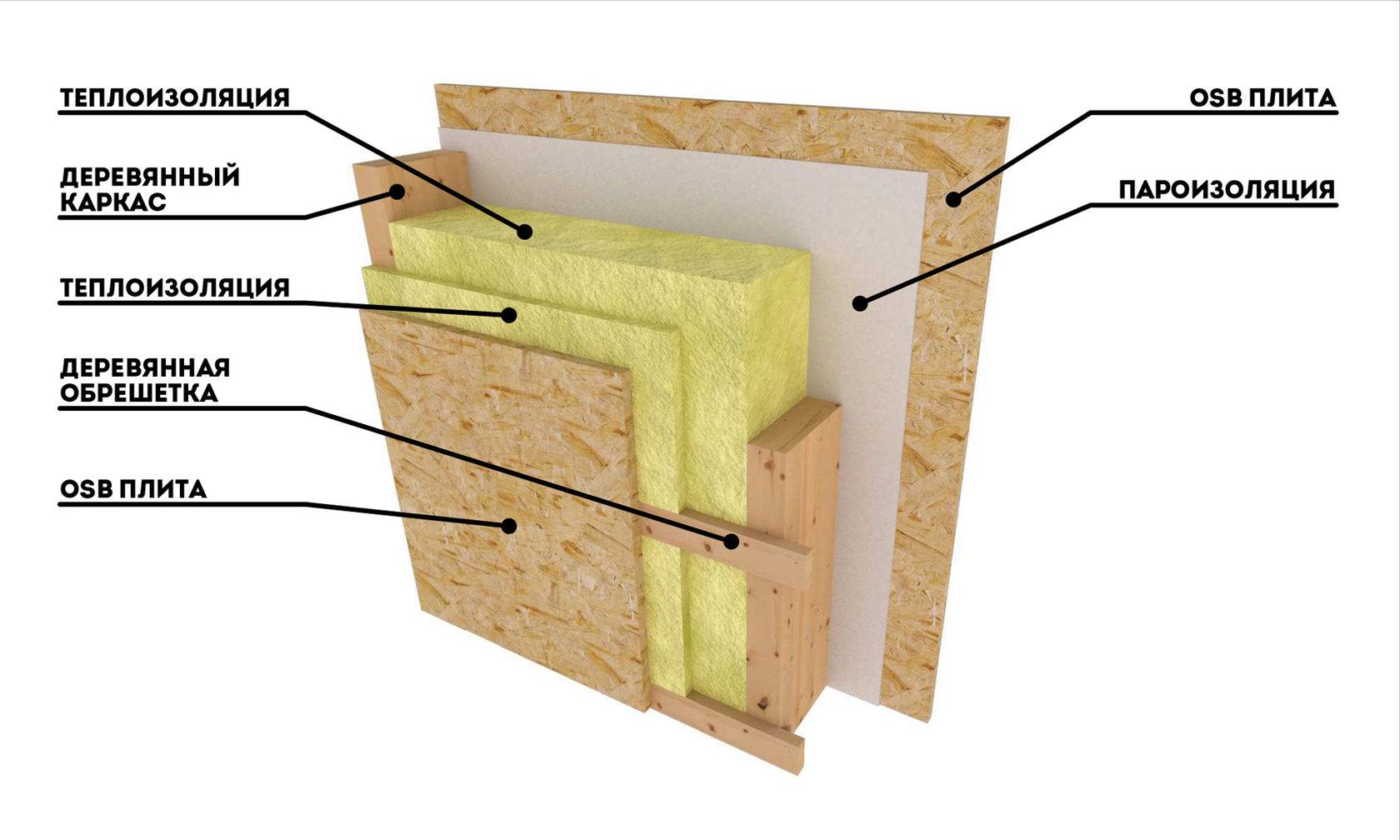 Расстояние между брусками должно быть немного меньше, чем размер утеплителя, чтобы плита была установлена враспор. Если расстояние между брусками будет меньше или больше требуемого — впоследствии может произойти деформация плиты, что в свою очередь приведет к появлению мостиков холода и повлияет на теплоизоляционные качества конструкции.