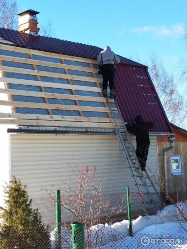 Она располагается поверх изоляционных материалов на специальные контррейки толщиной в 5 сантиметров. С помощью контрреек достигается дополнительная вентиляция крыши из металлочерепицы, к тому же, они защищают слой гидроизоляционной пленки от механических повреждений.