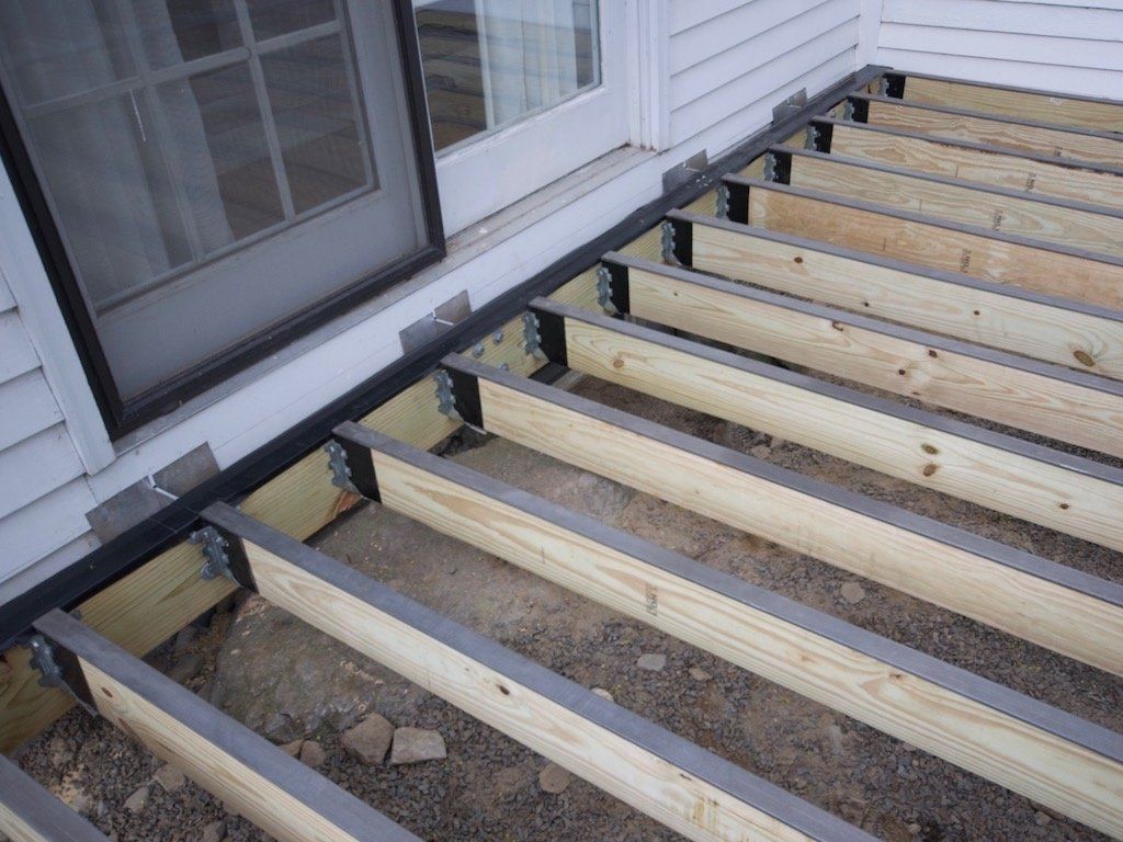 - Когда напольное покрытие уложено, прикрепите балку к нижней стороне чернового пола с помощью соединителей для каркаса и 1/2-дюймовых шурупов. Разместите разъемы на расстоянии 24 дюйма друг от друга.