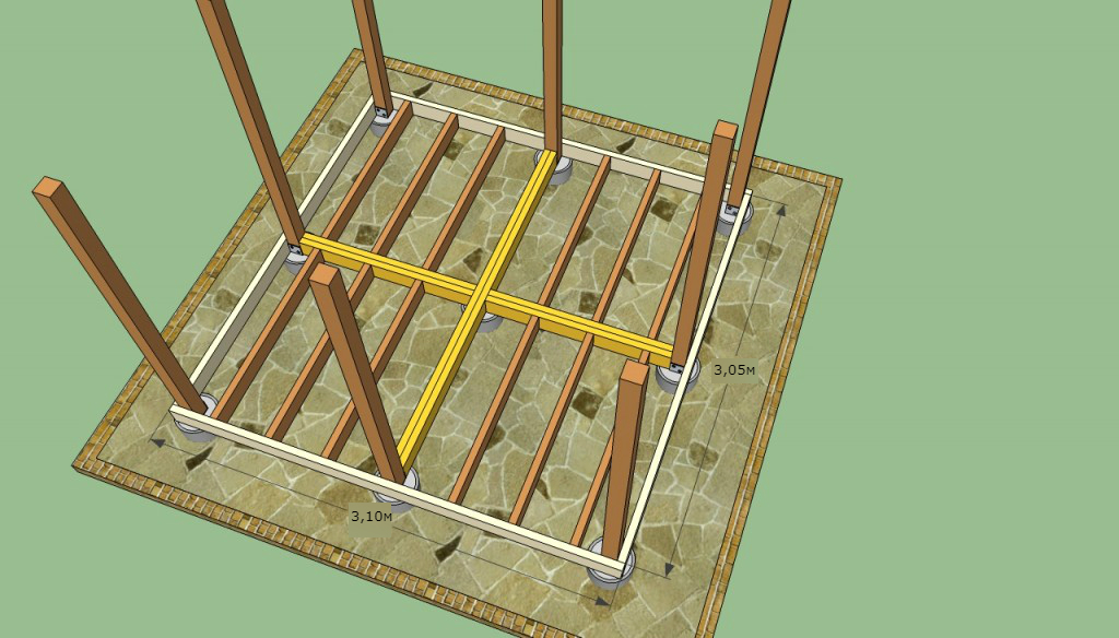 Крепление лаг к основанию дома