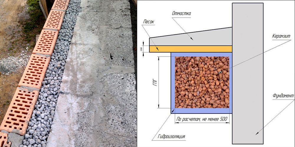 Подобный материал для утепления фундамента снаружи используют по следующей технологии: роют котлован, или до подошвы основы производят выемку почвы; при помощи полиэтилена в 200 мк. обустраивают гидроизоляцию: дно-стенка: всыпают керамзит до уровня земли; выравнивают поверхность и уплотняют; сверху пленка, засыпанная песком; заливают отмосток.