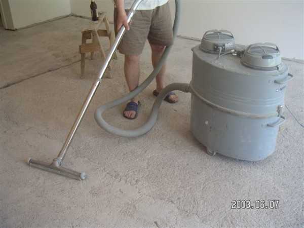 - Для того, чтобы ровнитель хорошо прилип с существующему полу нам необходимо пол необходимо тщательно подмести с помощью веника, а затем было бы отлично пропылесосить пол.