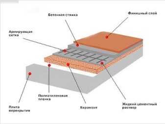 й выравнивающей смеси. Для этого цемент, песок и керамзит соединяются с водой, и готовая масса выкладывается на пол по маякам, не доходя 2–2,5 см до их верха. Завершит конструкцию слой бетонной стяжки.