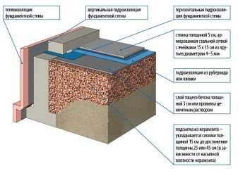 Гидроизоляцию перекрытияГидроизоляция будет препятствовать прохождению паров, которые могут увлажнить керамзит, используемый в качестве засыпки. По периметру стен прокладывают уплотнитель.