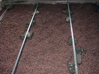 Керамзит мелкой фракции распределяют по поверхности гидроизоляции. В слой керамзита углубляют маяки. В качестве них можно использовать потолочный профиль для гипсокартона.