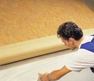 - Укладываем листовой материал в соответствии с инструкцией для бетонного пола.