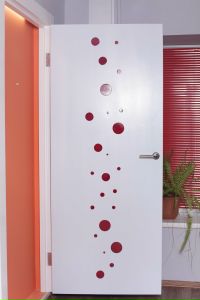 Затем поверхность обезжиривается и наклеивается стикер. Виниловая наклейка клеится также как и обои: следует проглаживать поверхность, чтобы не допустить образования складок и пузырьков с воздухом. Тоже самое следует делать и при использовании фотообоев, единственное предварительно на поверхность двери и фотобумаги необходимо будет нанести клей для виниловых обоев.