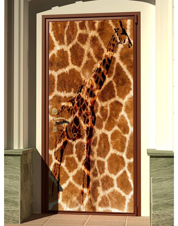 Таким образом можно отделать дверь из любого материала. Самоклейка – это прочный износостойкий и водонепроницаемый материал. По расцветке можно подобрать любую пленку: однотонную или с рисунком, матовую или глянцевую, зеркальную, некоторые модели имитируют дерево, кожу, камень и другие материалы. Можно заказать в салоне фотопечать и украсить свою дверь любимыми изображениями или фотографиями.