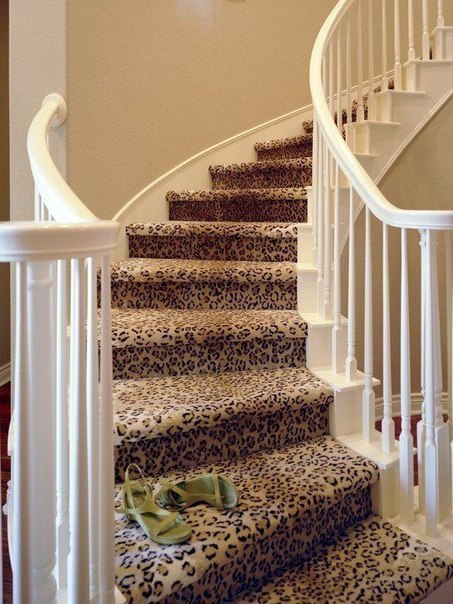 В большинстве случаев хозяева покупают уже готовые накладки на ступени лестницы из ковролина – производят их самых разнообразных цветов и рисунков. При этом им придаётся специальная форма. Такие изделия крепятся специальным креплением, чтобы передвижение по лестнице с такими ковриками оставалось вполне безопасным.