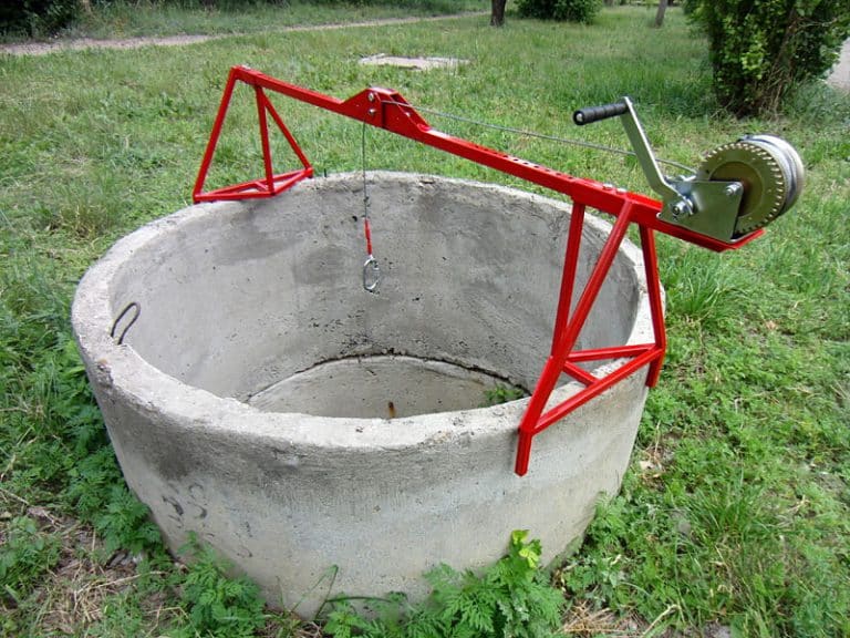 Профессионалы в этом деле обычно используют сварные приспособления с воротом. Это очень надежный механизм, благодаря которому, помимо прямого назначения, возможно, также опускать и поднимать тяжелые ведра с грунтом и самих рабочих из ямы колодца.