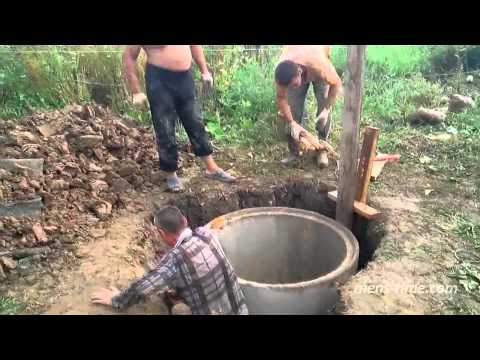 Затем выкопать землю под следующие кольца и т.д. При одиночном спуске колец труднее подкапывать яму, но при таком методе кольца не перекашиваются, а ровно ложатся друг на друга. Такой вариант, помимо этого, еще и требует меньшей затраты физической силы, поскольку погружать кольца нужно на небольшую высоту.