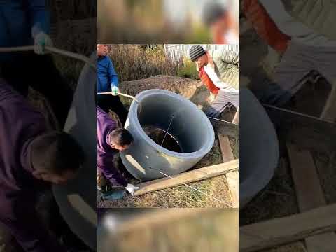 Существуют еще и более экстремальный метод опускания колец в яму. В основном такой способ применялся раньше, кольца просто кидали в яму для колодца и выравнивали их уже внизу, в самой яме. Во всю высоту колодца, при этом, устанавливаются доски, которые нужны, для того, чтобы при падении колец, они не застряли и не повредили стены вырытой ямы. Затем необходимо передвинуть кольца в нужное местоположение. Кольца передвигаются за угол и устанавливаются ровно с помощью монтировки или с помощью конструкции из бревна и приделанной к нему веревки, которая прицеплена за край самого кольца. Самым важным в данной процедуре будет установка колец так, чтобы они встали ровно друг на друга.