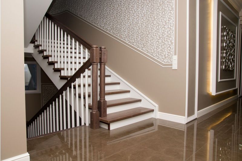Если лестница ведет на второй этаж, ее можно облагородить с помощью необычной покраски. Актуальным решением сегодня является окрашивание в два и более цветов.