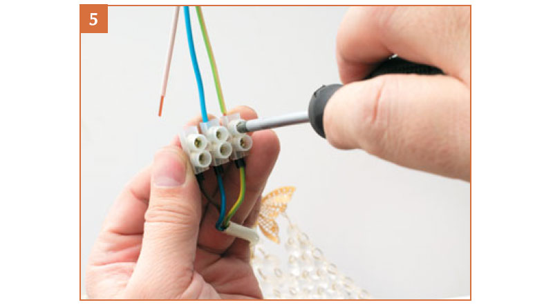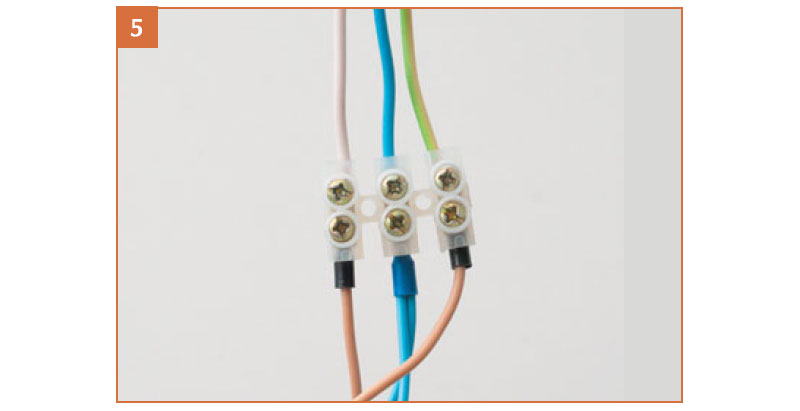 Π§ΡΠΎΠ±Ρ ΠΏΠΎΠ΄ΠΊΠ»ΡΡΠΈΡΡ ΠΊΡΠ°ΡΠ½ΡΠΉ, ΡΠ΅ΡΠ½ΡΠΉ ΠΈ Π±Π΅Π»ΡΠΉ ΠΏΡΠΎΠ²ΠΎΠ΄Π° ΠΊ ΠΏΠΎΡΠΎΠ»ΠΎΡΠ½ΠΎΠΌΡ ΡΠ²Π΅ΡΠΈΠ»ΡΠ½ΠΈΠΊΡ, Π½Π°ΡΠ½ΠΈΡΠ΅ Ρ ΠΏΡΠΈΠΊΡΠ΅ΠΏΠ»Π΅Π½ΠΈΡ ΡΠ΅ΡΠ½ΠΎΠ³ΠΎ ΠΏΡΠΎΠ²ΠΎΠ΄Π° ΠΊ ΡΠΎΠΉ ΡΡΠΎΡΠΎΠ½Π΅ ΡΠ°ΡΠΏΡΠ΅Π΄Π΅Π»ΠΈΡΠ΅Π»ΡΠ½ΠΎΠΉ ΠΊΠΎΡΠΎΠ±ΠΊΠΈ, ΠΊΠΎΡΠΎΡΠ°Ρ Π½Π΅ ΠΈΠΌΠ΅Π΅Ρ ΡΠΎΠΊΠΎΠΏΡΠΎΠ²ΠΎΠ΄ΡΡΠΈΡ ΡΠ°ΡΡΠ΅ΠΉ. ΠΡΠ»ΠΈ Π²ΠΎΠ·ΠΌΠΎΠΆΠ½ΠΎ, Π»ΡΡΡΠ΅ Π²ΡΠ΅Π³ΠΎ ΠΈΡΠΏΠΎΠ»ΡΠ·ΠΎΠ²Π°ΡΡ ΠΊΠΎΠ»ΠΏΠ°ΡΠΎΠΊ ΠΈΠ»ΠΈ Π±Π°Π½Π΄ΠΈΡΡΠΊΠΈΠΉ Π·Π°ΠΆΠΈΠΌ, ΡΡΠΎΠ±Ρ ΡΠ΄Π΅Π»Π°ΡΡ Π²Π°ΡΠΈ ΡΠ»Π΅ΠΊΡΡΠΈΡΠ΅ΡΠΊΠΈΠ΅ ΡΠΎΠ΅Π΄ΠΈΠ½Π΅Π½ΠΈΡ Π±Π΅Π·ΠΎΠΏΠ°ΡΠ½ΡΠΌΠΈ ΠΈ Π½Π°Π΄Π΅ΠΆΠ½ΡΠΌΠΈ.