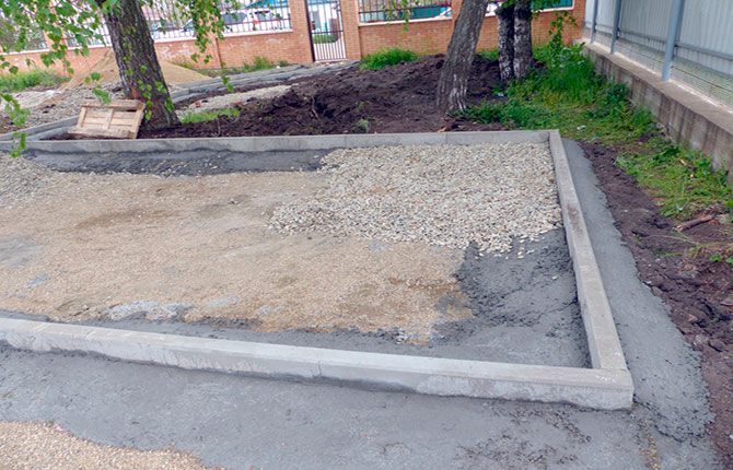 Глубина выборки грунта зависит от толщины плитки, назначения покрытия и местных условий. Подушка состоит из 2-3 слоёв подсыпки. Основной, несущий слой насыпают гравием с фракцией 20-40 мм.