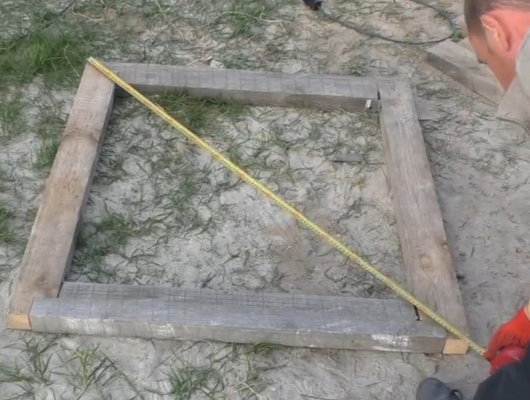 - Проверяете выставленные диагонали фундамента. Неважно, прямоугольник или квадрат — диагонали должны быть равными по длине.