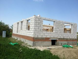 - Из него, очень быстро воздвигаются стены. Газобетон легкий и можно взять крупные блоки, что ускоряет возведение стен.
