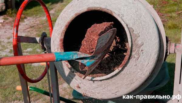 Если используется маленькая бетономешалка, загрузка компонентов происходит в следующем порядке: песок, часть щебенки, а после – цемент. После того, как все размешается, наливают воду и добавляют остальные составляющие раствора.