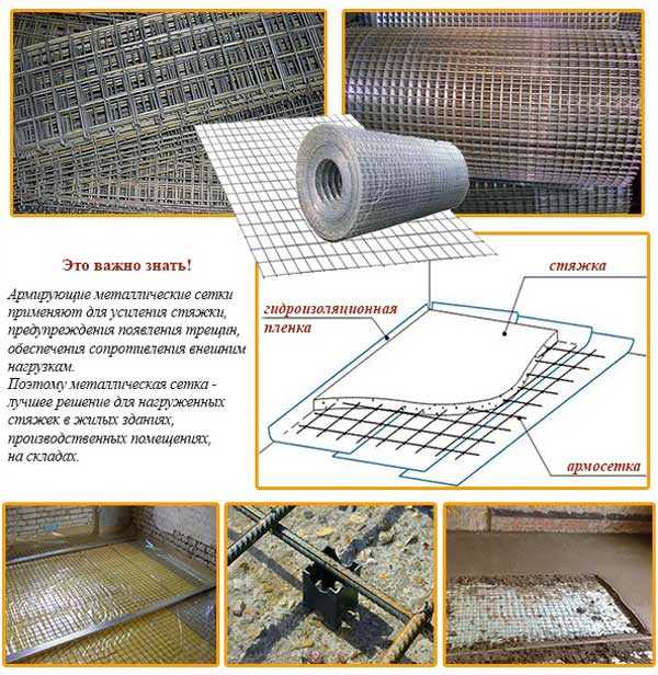 Необходимость армирования основания возникает только в случае обустройства стяжки непосредственно на поверхности земли. Для выполнения этой работы применяется сетка с мелкими ячейками, изготовленная из арматуры или толстой проволоки. Особенности обустройства армирующего слоя зависят от геометрических размеров помещения и особенностей конструкции здания.