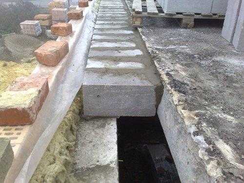 Под каждым зазором подвязывается доска, играющая роль опалубки. В полученную опалубку закладывается арматура и заливается бетонный раствор.