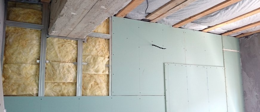 При кривизне стен более 50 миллиметров, крепление ГВЛ на клей не целесообразно. Такой метод крепления не подходит и для облицовки помещений, высотой более трех метров.