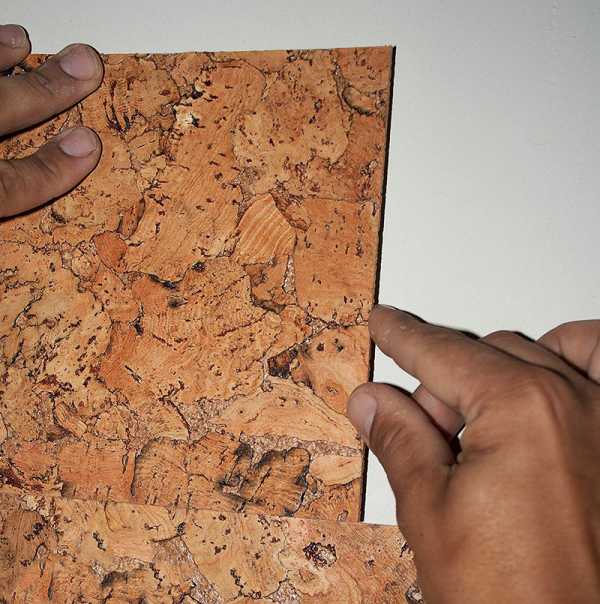 Пробковые доски могут отличаться одна от другой по размеру на два-три миллиметра, это нормально, но исключает выставление плит ровными рядами. Поэтому рекомендуется крепить доски таким образом, чтобы шов соседнего вертикального или горизонтального ряда упирался примерно в середину доски из соседнего ряда. Благодаря этому погрешность в размерах и швы станут еще менее заметными.