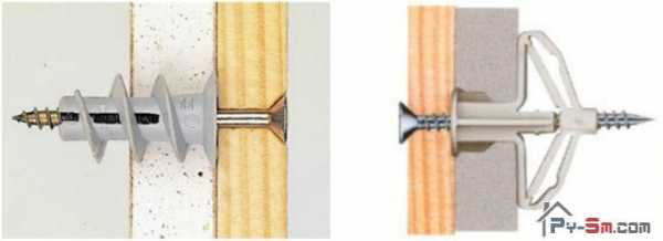 Для крепления полнотелых материалов лучше использовать нейлоновые дюбели по центру предмета. Пустотелые материалы можно цеплять по краям.