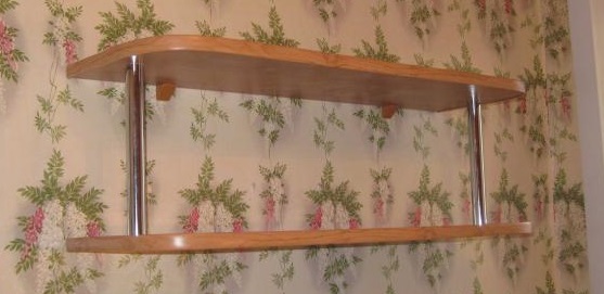 Вашу полку оставят на 2-3 мм от стены, но при наличии фрезера можно профрезеровать углубление для крепления крюков сзади себя, что сделает ее полностью заподлицо.