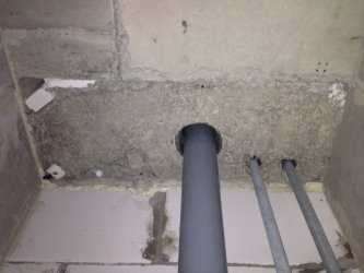 - Намечают отверстие диаметром большим, чем сечение канализационной трубы. В отверстии должна размещаться еще и гильза.