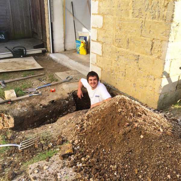 Этап 1. Роется траншея, в которой произойдет стыковка наружной и внутренней системы.